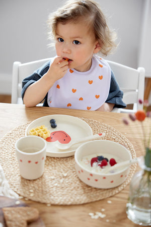 Het vrolijke Lässig serviesset, uit de serie Happy Rascals heeft een liefdevol design met vrolijke hartjes en regenbogen.
