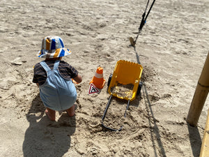 Speel uren lang met het zandspeelset met dumper op het strand, in de tuin of in de zandbak. Dit vijfdelige speelgoedset bestaat uit een dumper, pion, veiligheidsbord, een kleine schep en een grote schep/emmer.