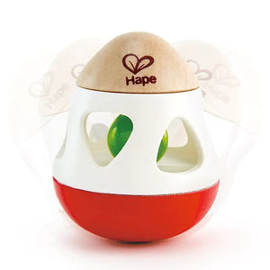Rol deze slimme rammelaar van u vandaan en hij rolt zo weer terug . Makkelijk om vast te pakken met kleine handjes, en het heeft een aangenaam klinkend belletje binnenin. De eivormige rammelaar heeft een belletje dat klinkt wanneer deze geschud wordt. Hij rolt terug naar het beginpunt wanneer deze gerold wordt op harde oppervlakken zoals tafels en vloeren. De openingen aan de zijkant maken het voor baby’s makkelijk de rammelaar vast te pakken en over de vloer te duwen.