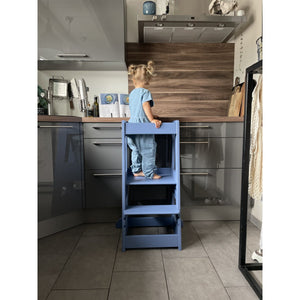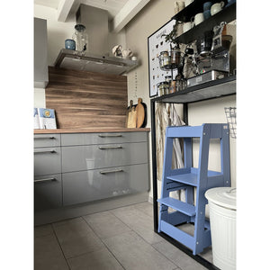 De Felix Beuken Duifblauw leertoren is ontworpen met het oog op veiligheid en gemak. De toren is stevig en blijft goed op zijn plek staan, zelfs als je kindje erop klimt of zich beweegt. Dit maakt de toren ideaal voor ouders die willen dat hun kind veilig mee kan helpen in het huishouden. Daarnaast kan het platform worden aangepast aan de lengte van je kleintje, zodat de toren meegroeit met je kind.