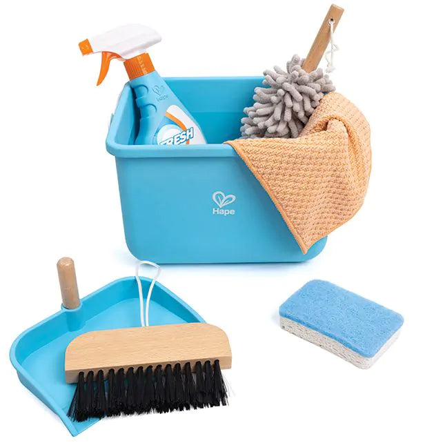 Houdt jouw kindje ook zo van poetsen? Maak het schoonmaken leuker dan ooit met onze uitgebreide schoonmaakset! Deze vrolijke set bestaat uit een emmer, doek, spons, handveger en blik, plumeau en een spuitbus. Hiermee wordt het huis binnen no-time spik en span, en kunnen kinderen op een speelse manier kennismaken met huishoudelijke taken.