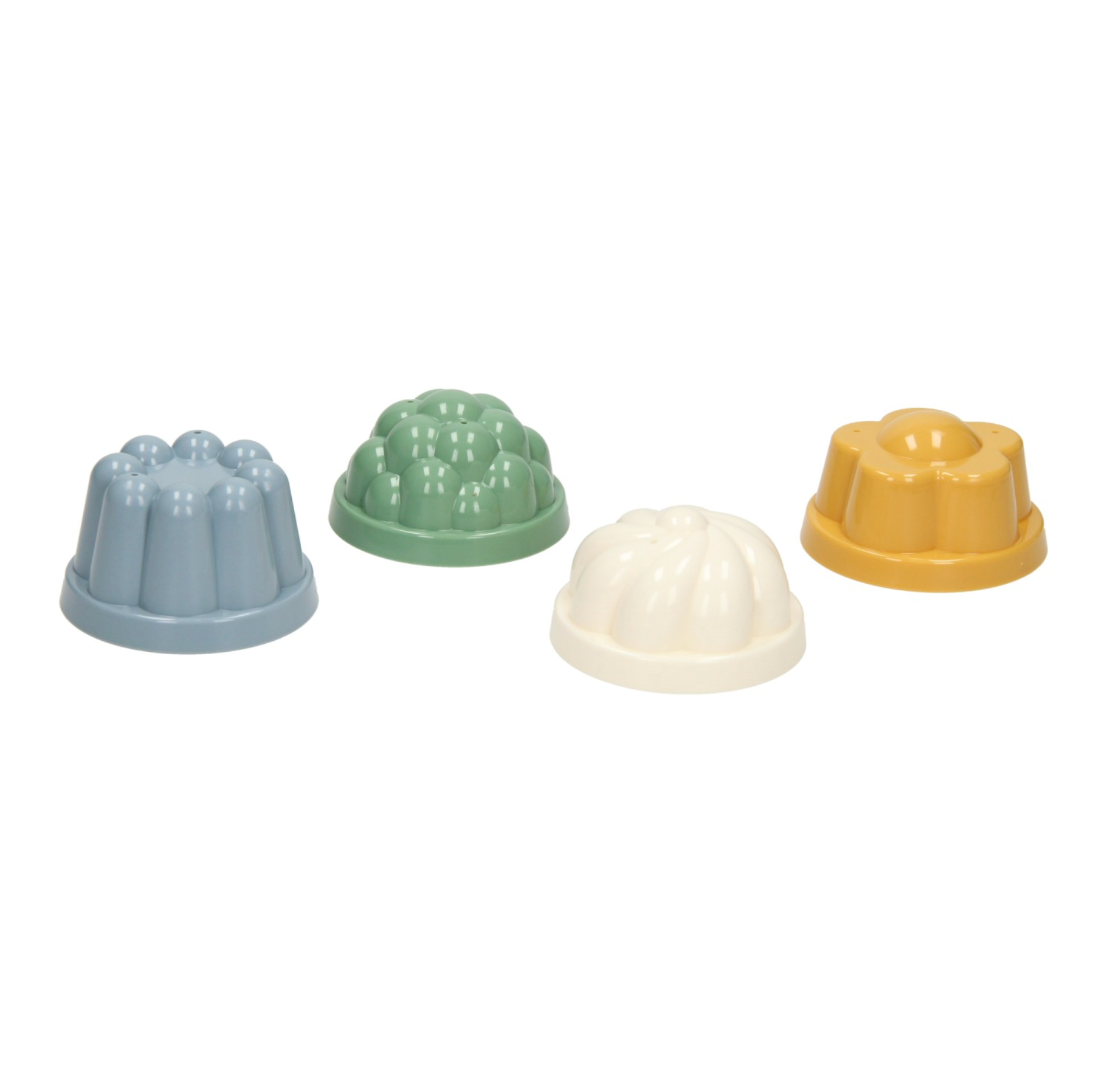 Set van 4 zandvormpjes in verschillende kleuren en vormen
