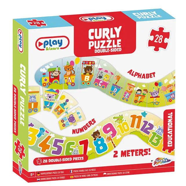 Met deze twee meter lange puzzel leren kinderen spelenderwijs de basis van het alfabet en het tellen. De puzzel is aan de ene kant ontworpen met alle 26 letters van het alfabet, terwijl de andere kant cijfers bevat om te tellen. Met in totaal 28 puzzelstukjes is dit een geweldige manier om de cognitieve ontwikkeling van je kleintje te stimuleren.
