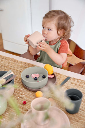 Compleet in de serie: Deze tuitbeker maakt deel uit van de powder pink serie, die ook een drinkbeker, bord en set met 4 lepels in dezelfde kleur omvat.