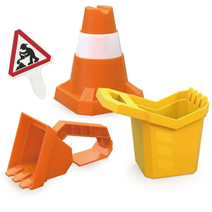Speel uren lang met het zandspeelset op het strand, in de tuin of in de zandbak. Dit vierdelige speelgoedset bestaat uit een pion, veiligheidsbord, een kleine schep en een grote schep/emmer.
