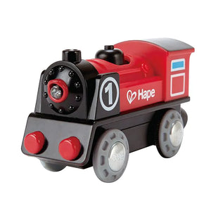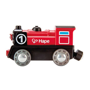 Met deze leuke houten treinlocomotief nr. 1 van Hape wordt het rijden eenvoudig. De op batterijen aangedreven trein rijdt eenvoudig voor- en achteruit. De lamp brandt aan de voorkant. Met de magnetische velden koppel je hem eenvoudig aan een andere trein.