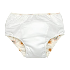 Ontdek onze herbruikbare, vrolijke en hippe wasbare zwemluiers van Läessig, ideaal voor strand en zwembad. Deze optrekbroekjes hebben een leuke regenbogenprint en zijn voorzien van anti-lekrandjes bij de beentjes en het middel. Dankzij de geïntegreerde, gepatenteerde vochtabsorberende voering blijft de huid aan land zo droog mogelijk. Vocht wordt opgenomen en opgesloten, zodat grote ongelukken worden voorkomen. Na gebruik was je ze eenvoudig op 30°C. Gemaakt van 100% gerecycled polyester, zijn ze voordeliger en duurzamer dan wegwerpzwemluiers, met minder kans op huidirritatie.