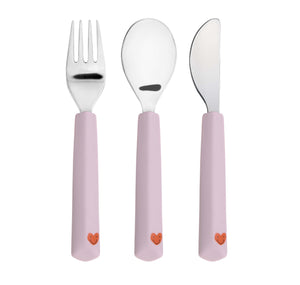 Kinderbestekset hartjes lavendel met silicone handvaten 3 stuks