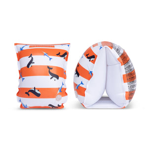 Ga op avontuur met de gestreepte haaien zwembandjes van Swim Essentials – voor kleine waterrakkers die veilig én stijlvol willen zwemmen!