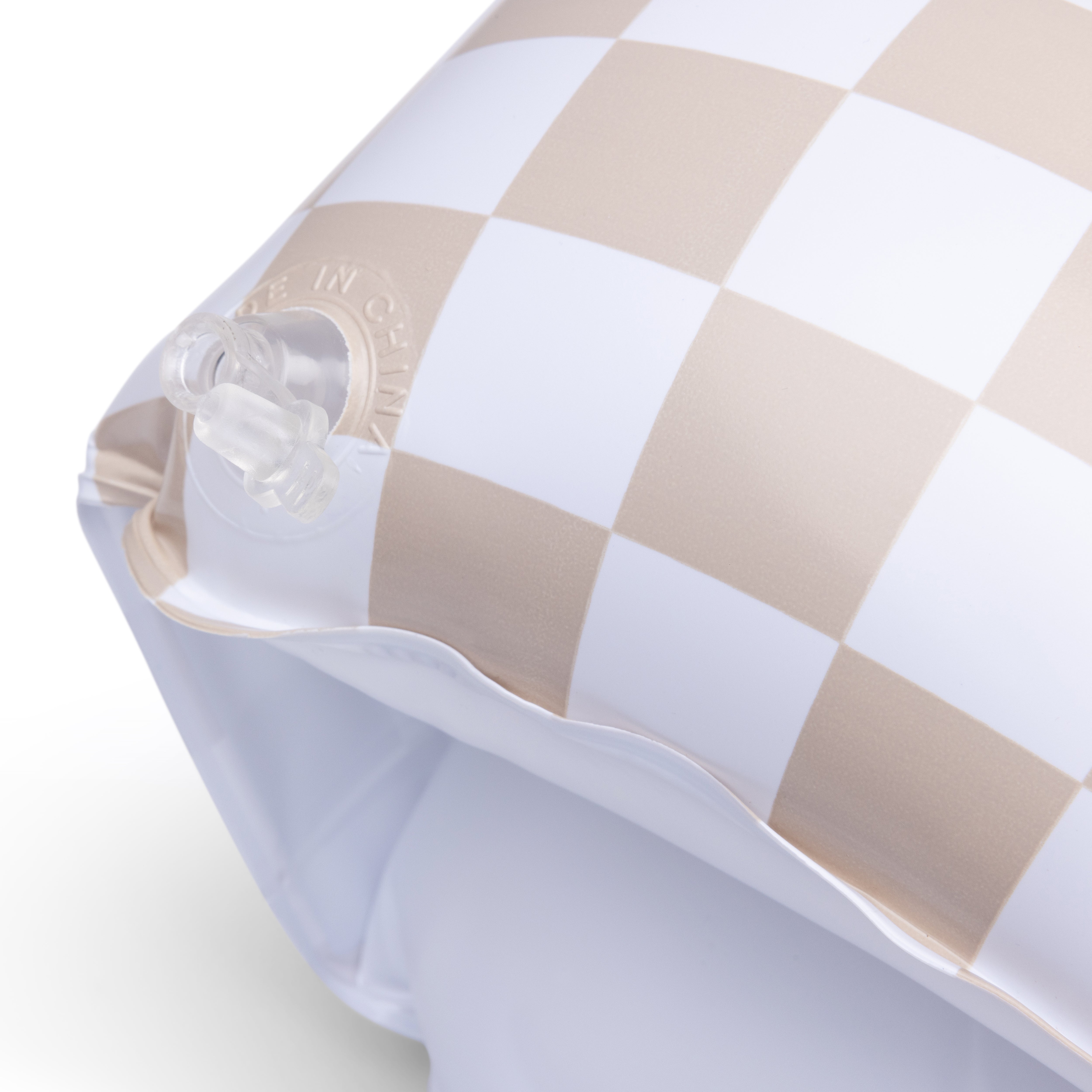 Voeg een stoere twist toe aan het zwemavontuur van je kleintje met de beige Checkmate zwembandjes! Het ruitpatroon zorgt voor een stijlvolle en unieke look.