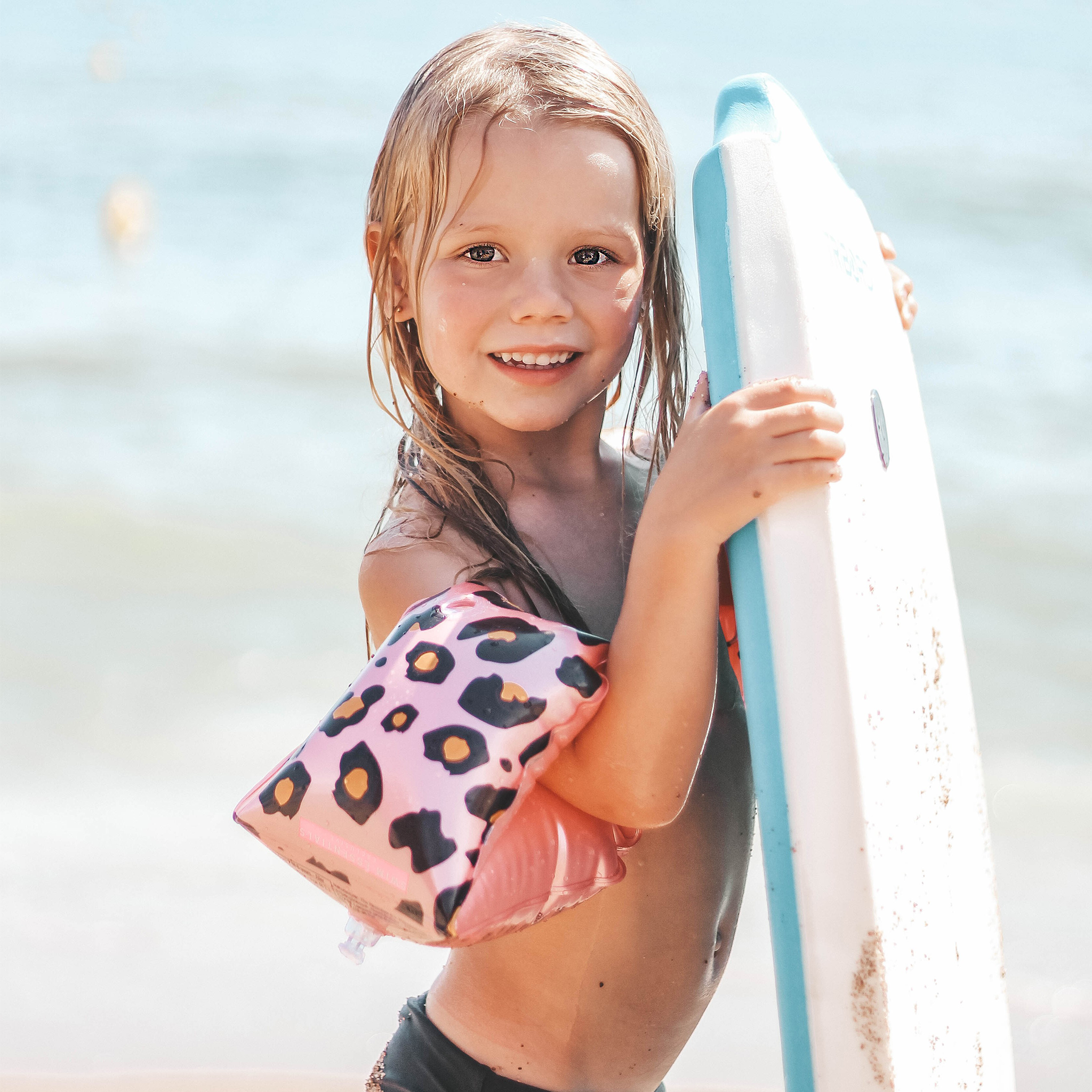 Met de Bas & Bliksem Zwembandjes in een unieke rosé gouden kleur zal je kindje op een stralende manier genieten van het water! De speciale panterprint op de zwemvleugels maakt dat ze hip en stijlvol zijn en hierdoor zal je kindje opvallen. De Swim Essentials panterprint zwembandjes zijn geschikt voor kids tussen de 2 en 6 jaar (15-30 kg) en zullen ervoor zorgen dat ze op een veilige en leuke manier kan spelen in het zwembad.